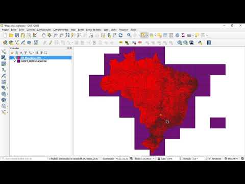 Para movimentar o mapa, o instrutor sugere usar a opção 'Deslocar Mapa' no menu superior, transformando o cursor em uma mão para arrastar a tela. Para selecionar feições, ele indica a opção 'Selecionar feição', permitindo selecionar um ou vários municípios por clique ou área, que ficam destacados em amarelo.