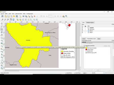 Minas Gerais é colorida de vermelho, seguindo um processo similar de acesso às propriedades da camada e alteração da cor. Ituiutaba, por sua vez, é configurada para ter a cor amarela, embora o instrutor note que o amarelo não está nas cores padrão.