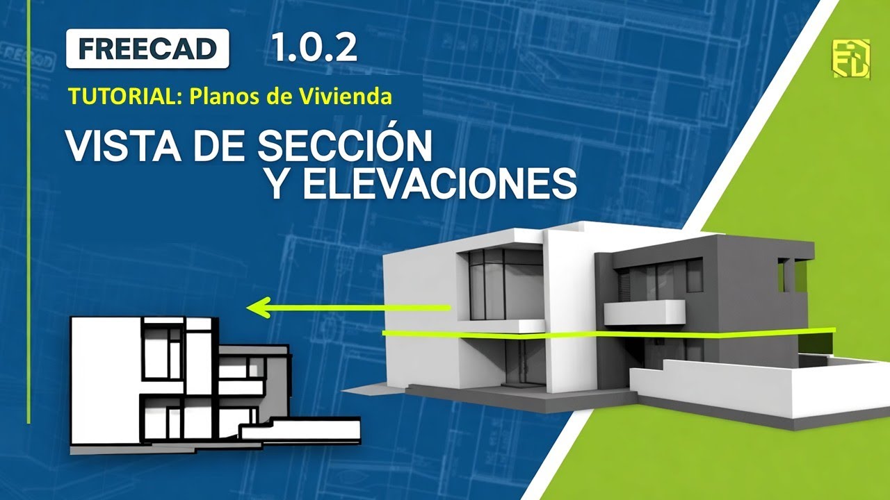 Tutorial en español para crear vistas de sección y elevaciones en planos de vivienda usando FreeCAD 1.0.2, lección 19 de Construye Mejor.