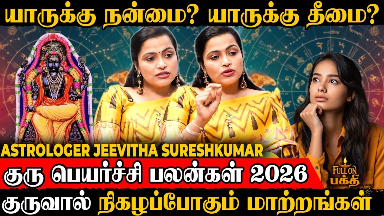 2026 குரு பெயர்ச்சி மூலம் ராசிகளுக்கு வரும் மாற்றங்கள், சிக்கல்கள் மற்றும் வாய்ப்புகள் பற்றி ஜீவிதா சுரேஷ்குமார் விளக்கம்.