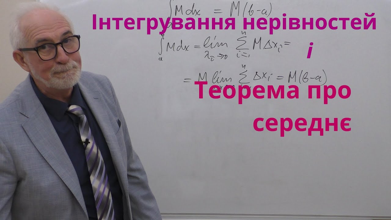 Відео розглядає інтегрування нерівностей та теорему про середнє значення для неперервних функцій на відрізку.