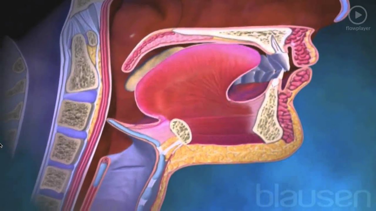 Her der tygger vi maden allerede til mindre dele, og det bliver blandet med noget spyt, der starter med at få maden til at blive i mindre stykker.
