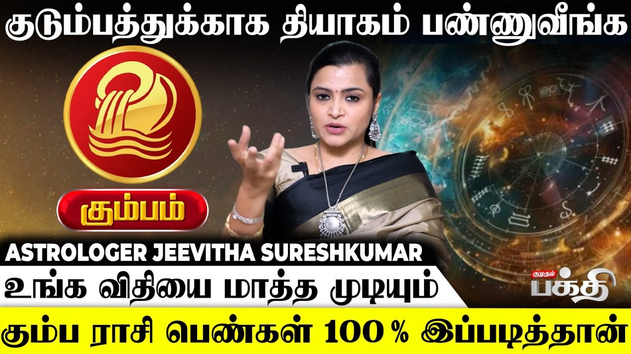 கும்பம் ராசி பெண்களின் திருமண வாழ்க்கை, தொழில், மற்றும் வாழ்க்கை சவால்கள் பற்றி ஜீவிதா சுரேஷ்குமார் விளக்கம்.