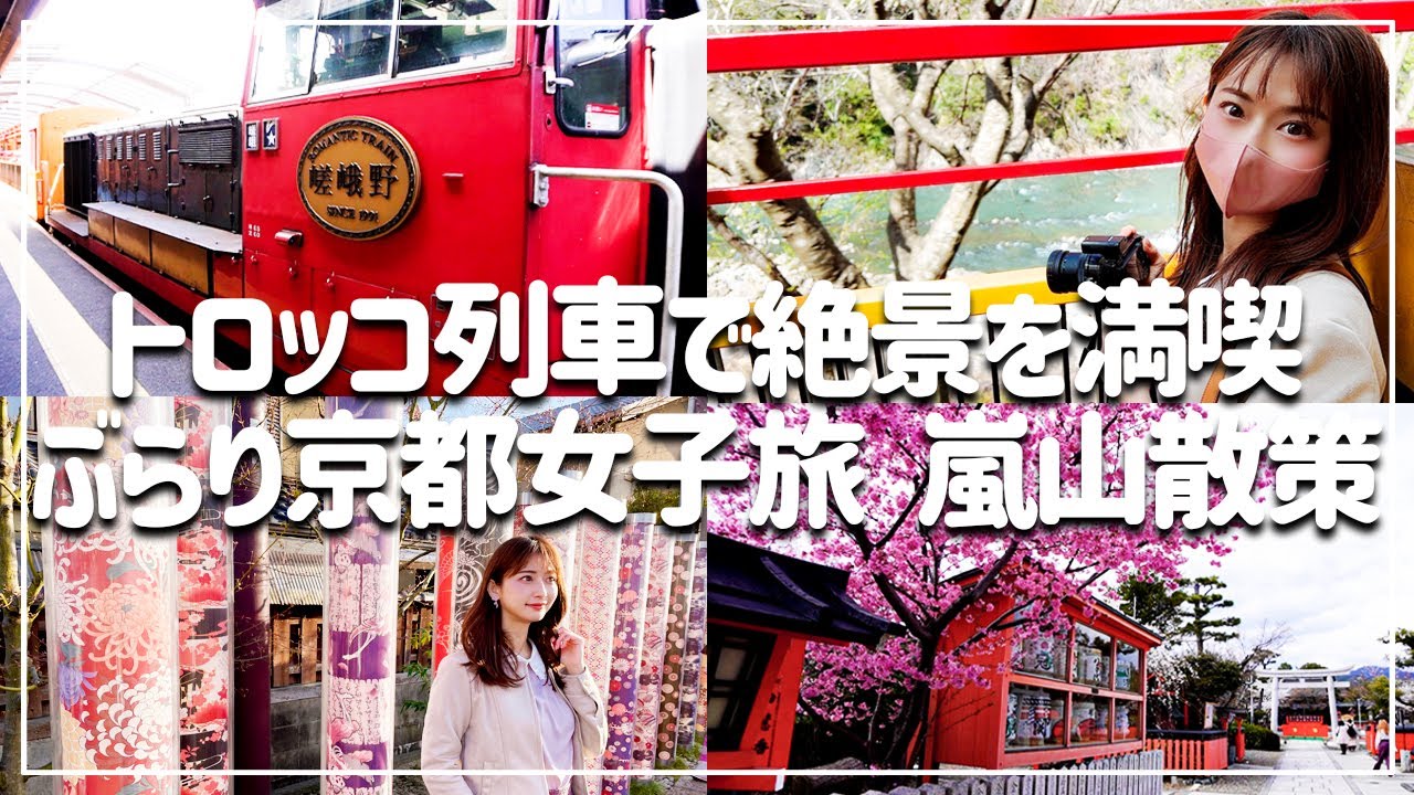 こんにちは。どこでもスカートで旅するチエルです。今回から春の京都旅Vlogになります。憧れの嵯峨野トロッコに乗って嵐山エリアを散策してきました。