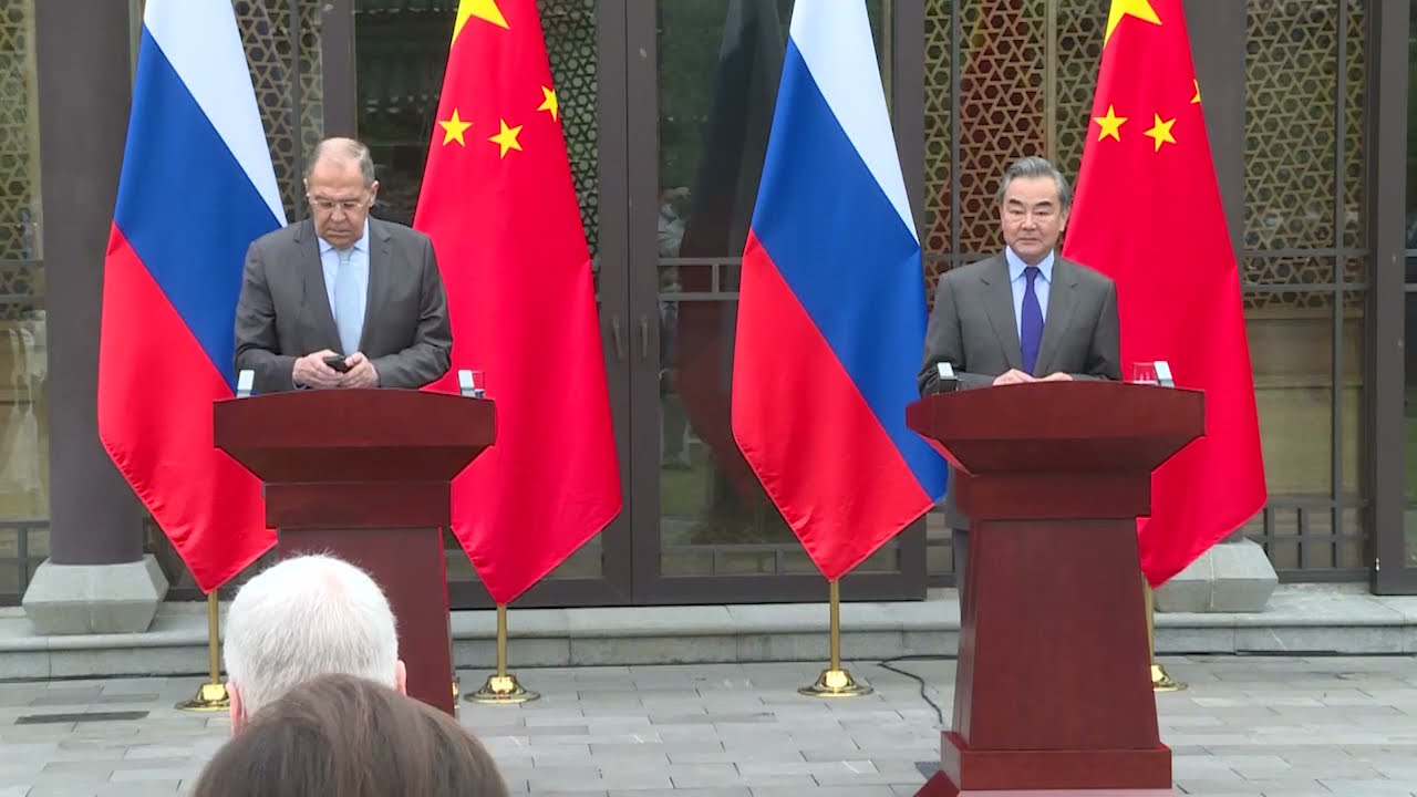Совместная пресс-конференция министров иностранных дел России и Китая о развитии стратегического партнёрства и международного сотрудничества.