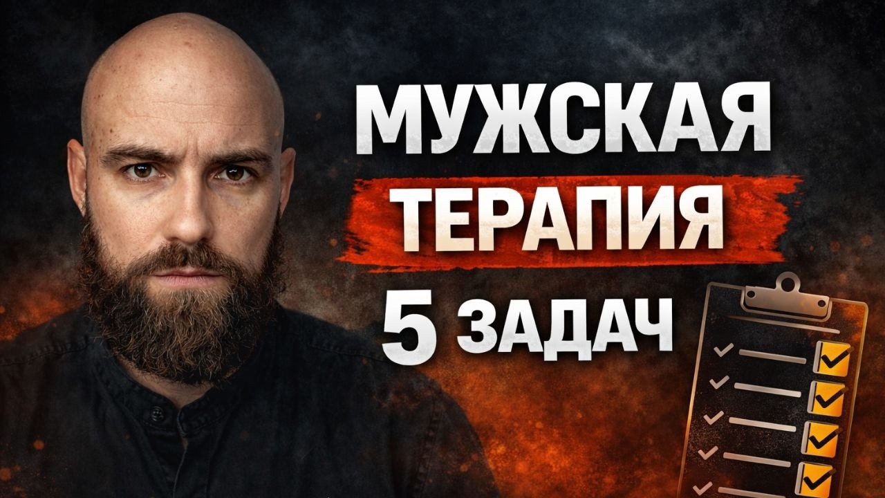 Видео о мужской психотерапии и важности развития внутреннего отца для преодоления тревоги и обретения зрелости.