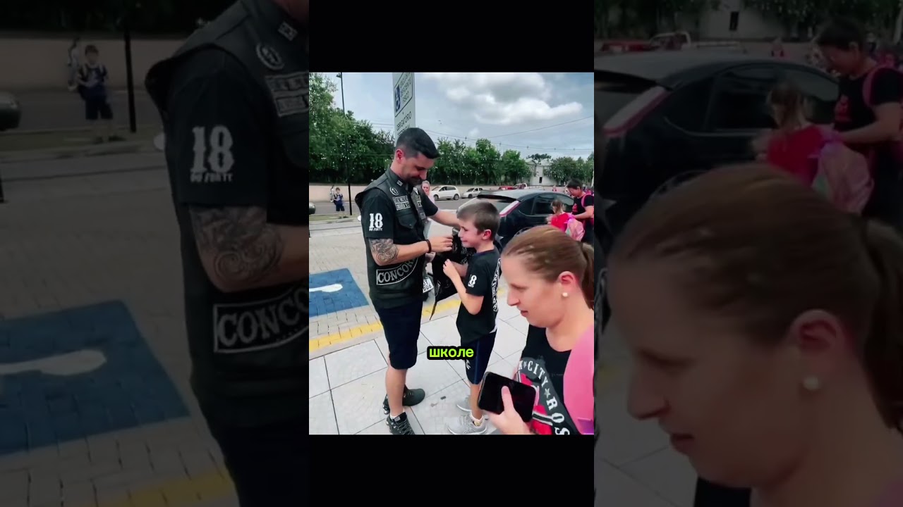 Отец приехал за сыном к школе вместе с байкерской группой, чтобы показать поддержку и изменить отношение одноклассников.