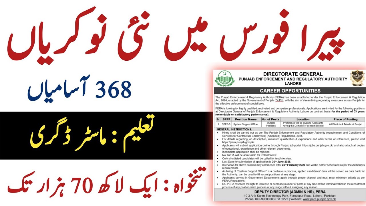 پیرا فورس کی طرف سے سسٹم سپورٹ آفیسر کے 368 اسامیاں پنجاب حکومت میں، تنخواہ 1 لاکھ 70 ہزار تک، اپلائی کرنے کا مکمل طریقہ کار۔