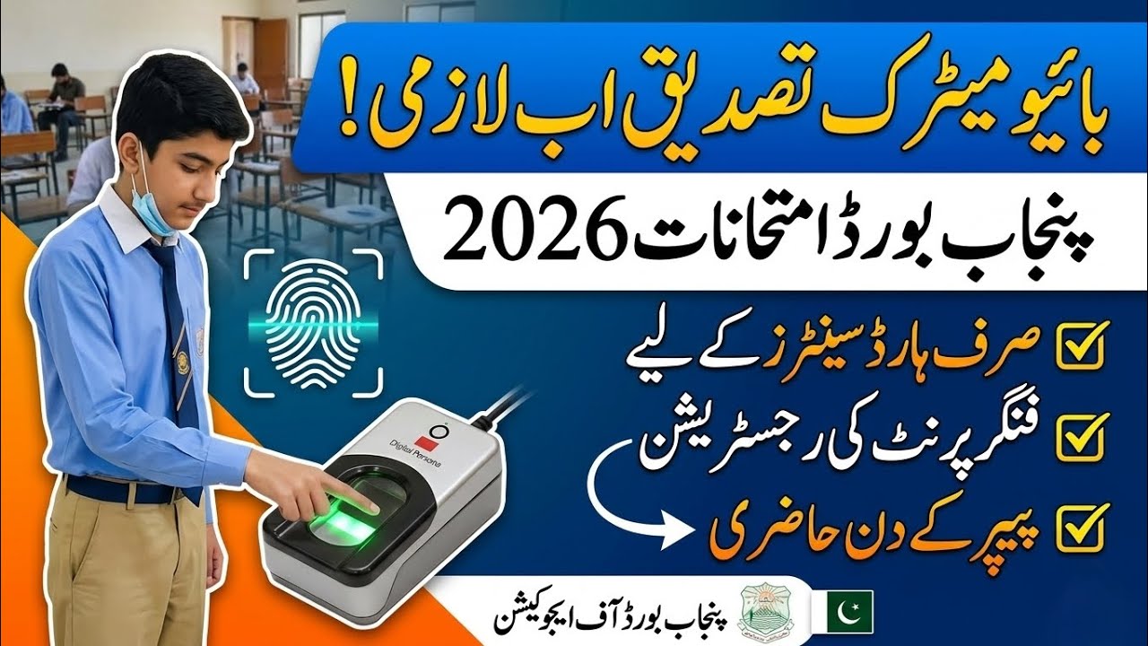 پنجاب بورڈ کے امتحانات 2026 کے لیے بائیومیٹرک رجسٹریشن اور حاضری کا نیا نظام متعارف، ہارڈ سینٹرز میں شفافیت یقینی بنائی جائے گی۔