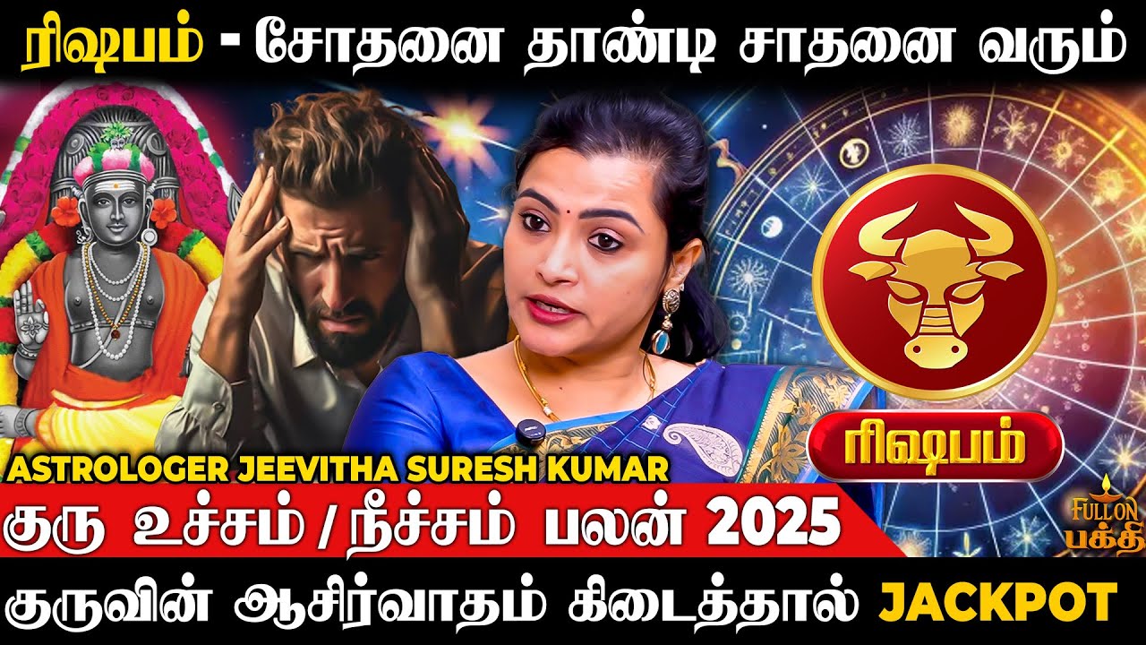ரிஷப ராசிக்கு குருவால் ஏற்படும் மாற்றங்கள், குலதெய்வம், குரு பலம் மற்றும் வாழ்க்கை மேம்பாடு குறித்து ஜீவிதா ஜோதிடர் விளக்கம்.