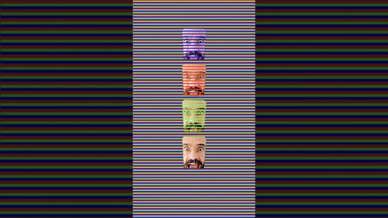 What we do know is that when a colored pattern is overlaid on a colored background, our brains, or maybe just our eyes, assimilate the colors into their additive mixture.